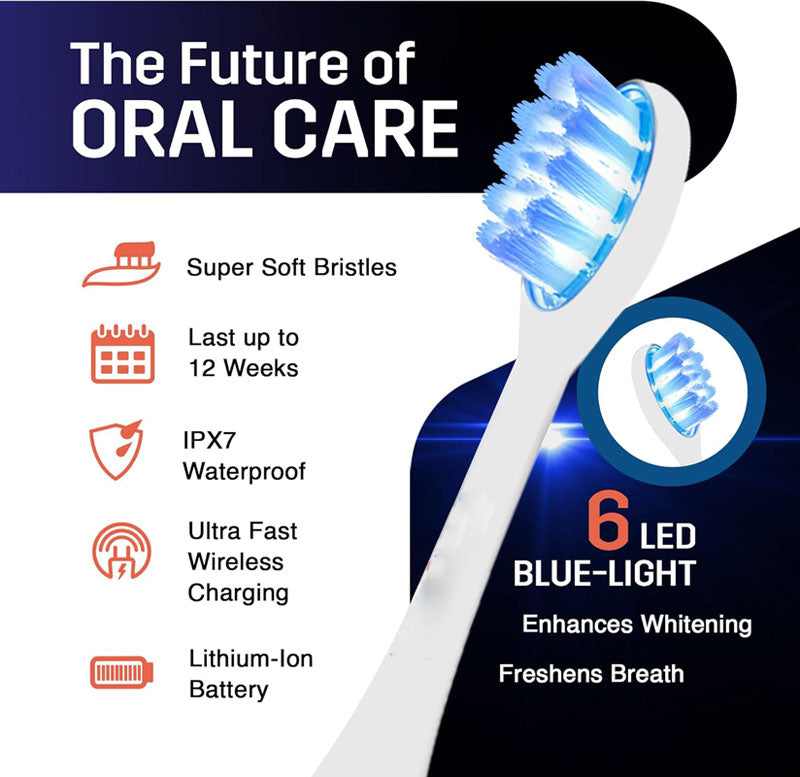 - Blue LED Light Brush Head: Accelerates teeth whitening each time you brush.